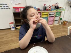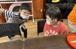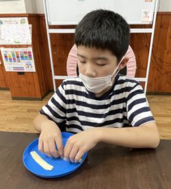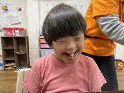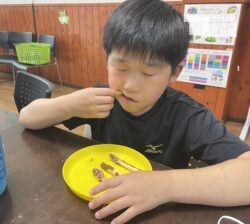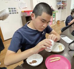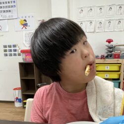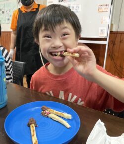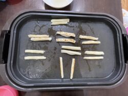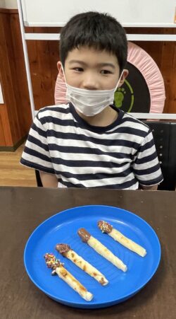 焼いているあいだ、事前にスタッフが作ったポッキーを食べましょう。