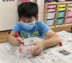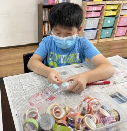 油性ペンで絵を描いたり、マスキングテープを貼ったり。