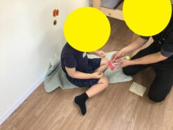 大きいお友達は、画用紙にストローを貼り付けるところから行いました。