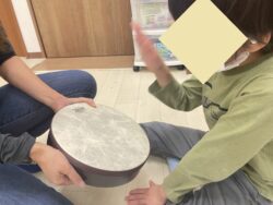 指だけを使って叩いたり、先生とリズムを少し変えてみたり。