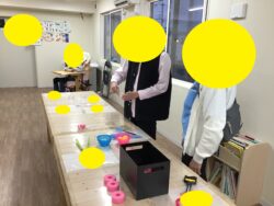 お箸やトングを上手に持って、ピンポン玉を移していきます。