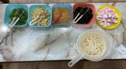 「きつね(油揚げ)、天かす(たぬき)、わかめ…。」