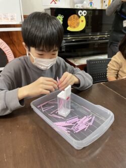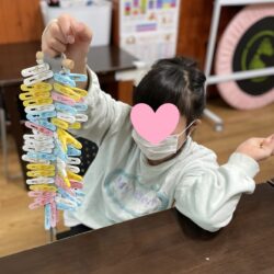 隙間を見つけて、洗濯ばさみをつけていきます。