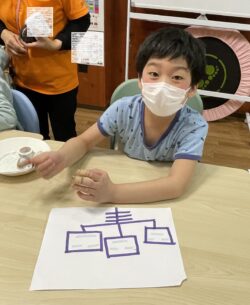 下校時間が遅く、課題に途中から参加したH君ですが、