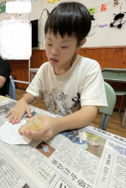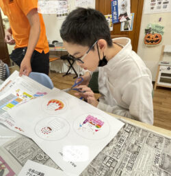 すべるようにはさみでイラストを切っていくR君。