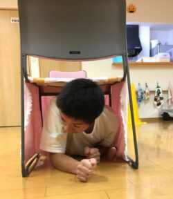 続いてはトンネルくぐり。高校生にはきつそうですが、ほふく前進で上手にくぐれました。