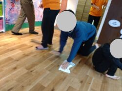 雑巾を絞る練習をしてから…雑巾がけスタート💨