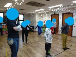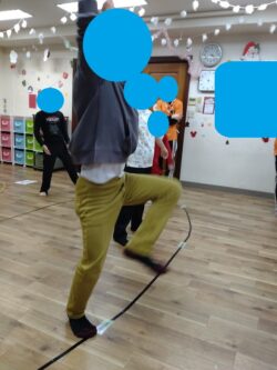 ただ踊るだけではなく、足元をよーく見るとマークがあり、そこで一曲ごとに右にずれ踊ります!