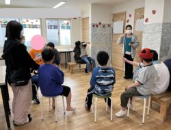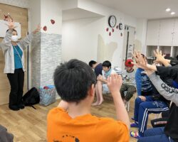 4月24日は、外部の講師をお招きして『英語リトミック』をおこないました。