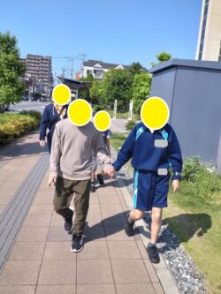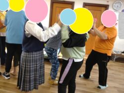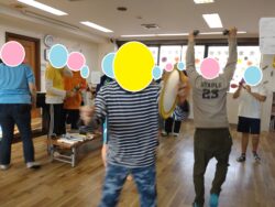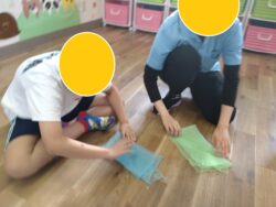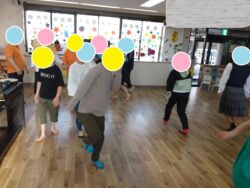先生のリズムに合わせてタンバリンを叩いたり、音楽に合わせて歩いたりすることができました♪