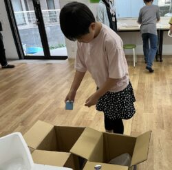 段ボールにイラストが貼ってあるので、それぞれのゴミを