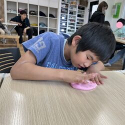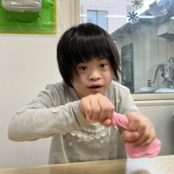 5月17日は感覚遊びで小麦粉粘土をおこないました。