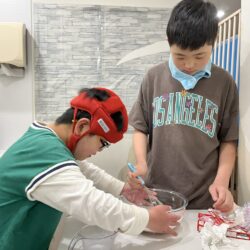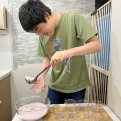 おやつは、みんなで仲良くイチゴのフルーチェを作りました🍓