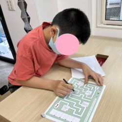 線つなぎ・数合わせ・ひらがな迷路など、児童に合わせて2枚ずつ取り組んでいます💡