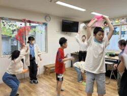 リトミックスカーフを使い、ブンバ・ボーンやジャンボリーミッキーで